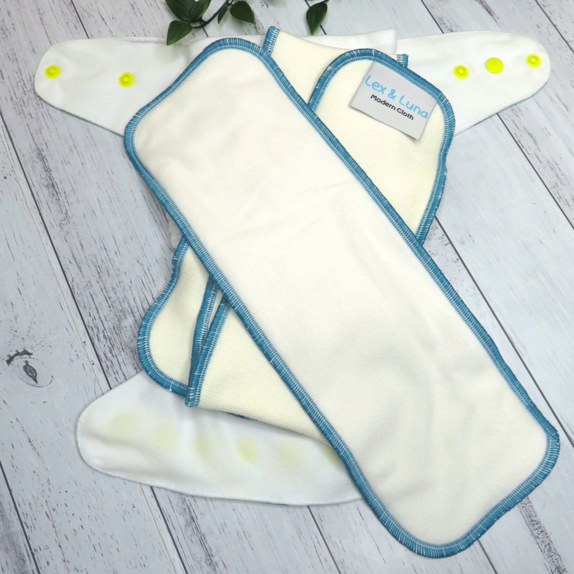 Lex & Luna All-In-Two Pocket cloth nappies each come with a super absorbent snake insert made from a quality bamboo/cotton blend, plus a smaller booster made using the same quality bamboo/cotton blend and topped with suede cloth allowing you to just simply lay the inserts into the shell if you don’t wish to stuff them into the pocket.