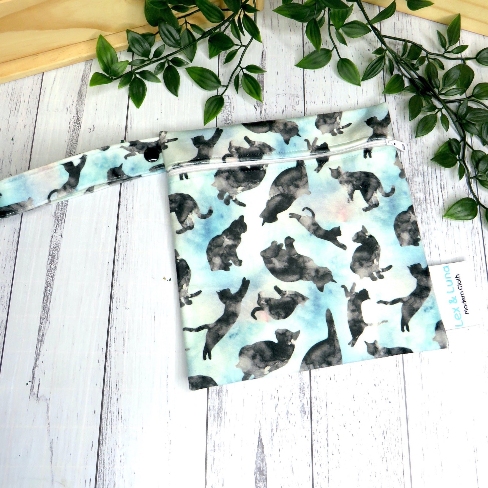 Lex & Lunas premium PUL Mini Wet Bags are compact, yet generous size 20x20cms, with a single zipper opening and a handle with a snap for convenience.